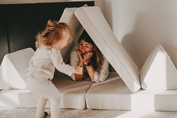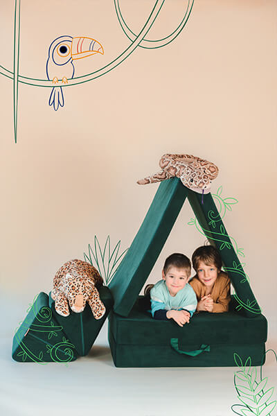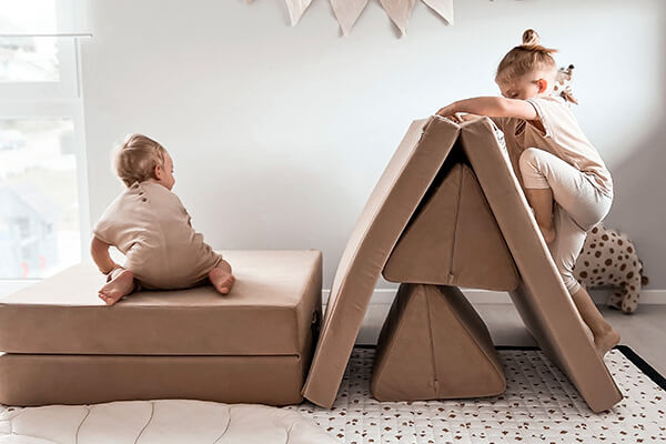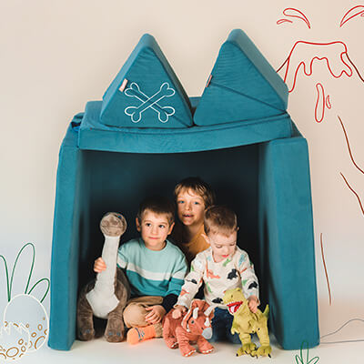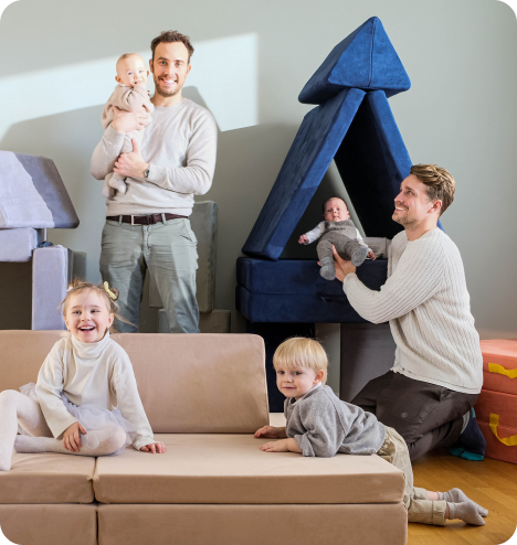 Angetrieben von unserem kunterbunten Alltag mit insgesamt vier Kindern waren Felix und Michael auf der Suche nach einer Mischung aus vielseitigem Spielzeug und Sofas, die nachhaltig genutzt werden und sich den wechselnden motorischen und geistigen Fähigkeiten im Laufe der Kindheit anpassen.