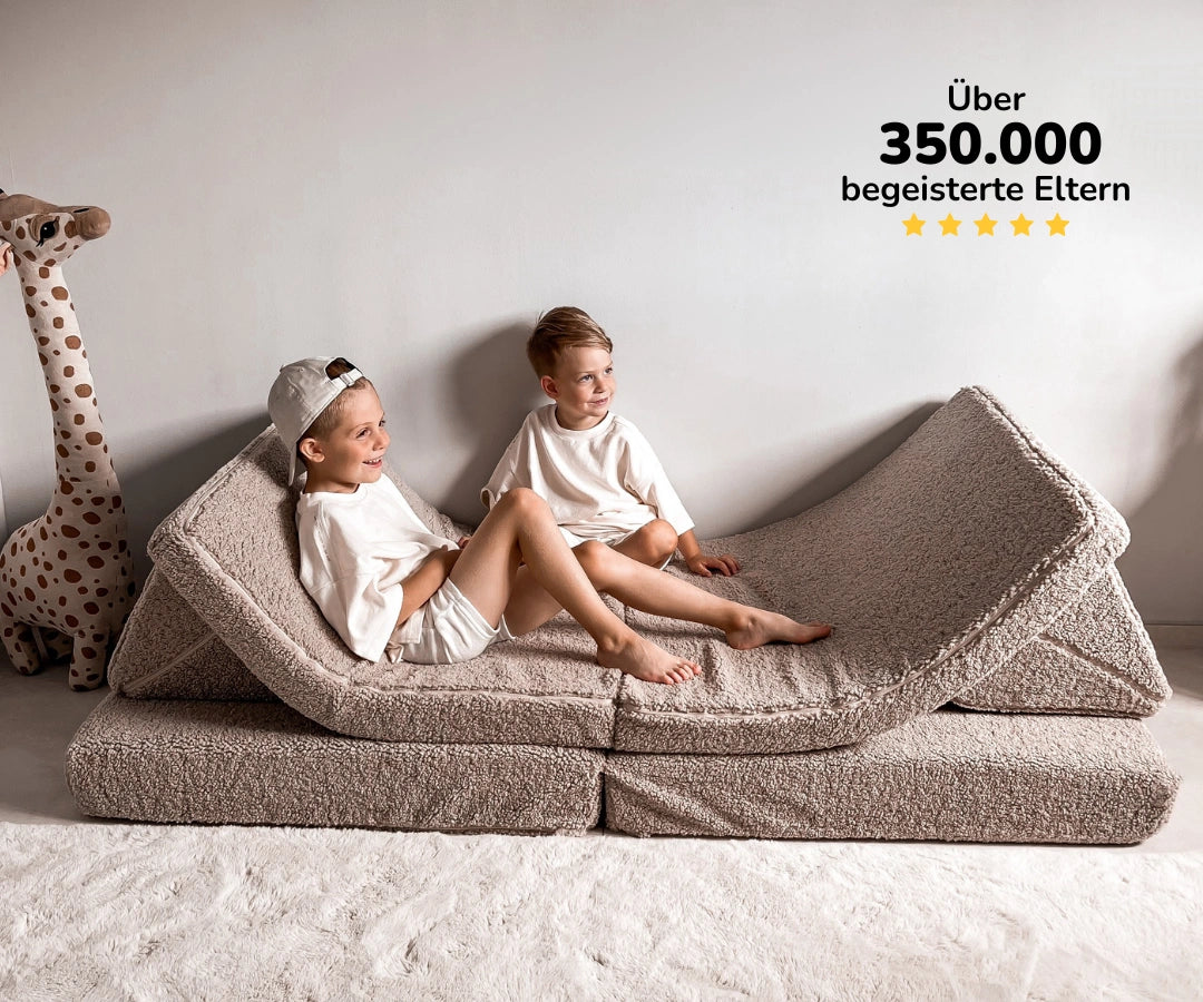 Das Spielsofa von Funzy ist kein gewöhnliches Sofa für das Kinderzimmer. Es ist ein flexibles, modulares Möbelstück, das speziell für Familien mit Kindern entwickelt wurde. Egal ob als super bequeme Kinder-Couch für die Kuschelecke oder als vielseitiges Spielsofa zum Klettern, Spielen und Toben – Das Funzy Spielsofa passt sich jederzeit den Bedürfnissen deines Kindes an und wächst mit und bleibt dabei immer stabil. Es begeistert sowohl Familien mit Kindern als auch Bildungseinrichtungen, die Wert auf Kreativität, Sicherheit und Langlebigkeit legen. Und auch optisch fügt es sich harmonisch in jedes Zuhause oder Ambiente ein.