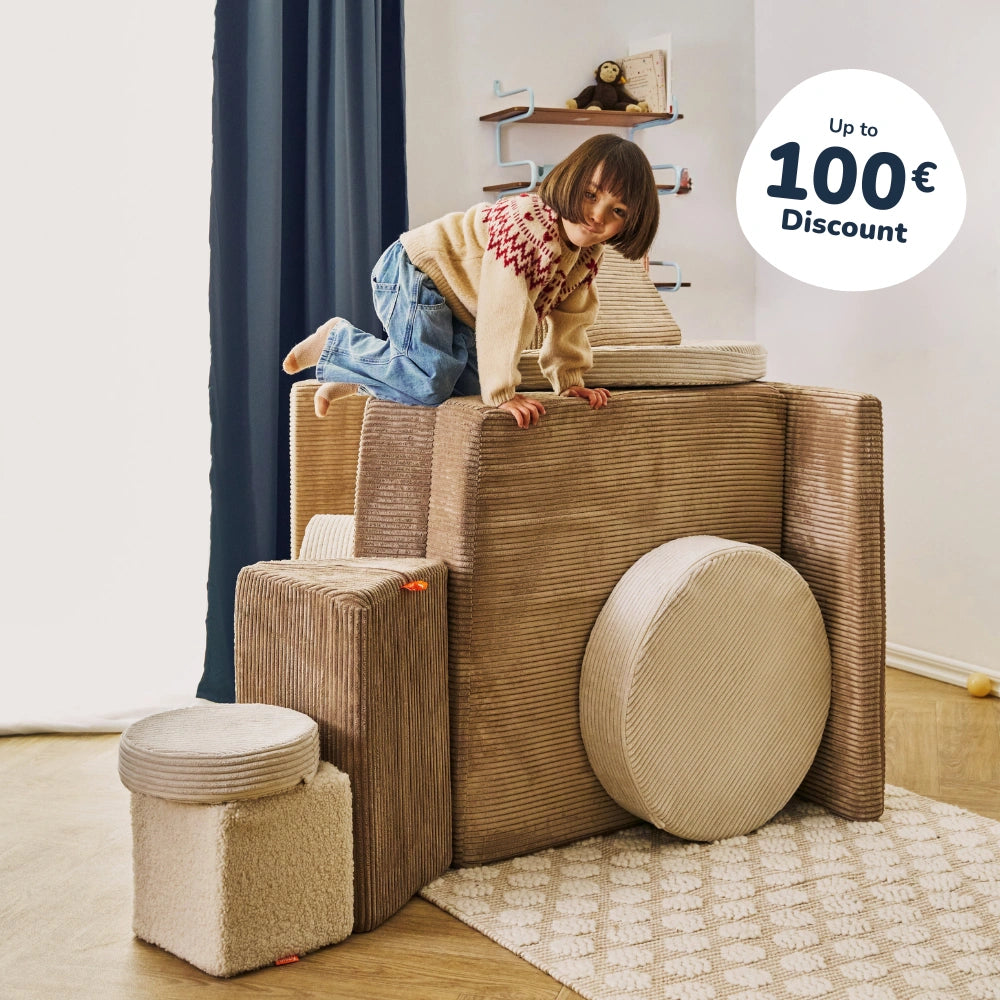 Driven by our colorful everyday life with a total of four children, Felix and Michael were looking for a mix of versatile toys and sofas that could be used sustainably and adapt to changing motor and mental skills throughout childhood.