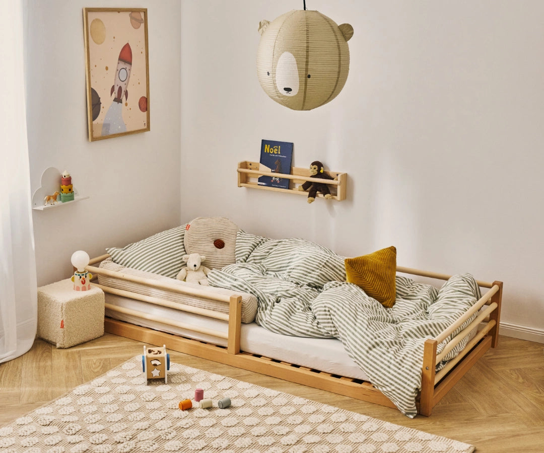 Durch die niedrige Einstiegshöhe können Kinder das Bett eigenständig nutzen. Das fördert motorische Fähigkeiten, Selbstständigkeit und selbstbestimmtes Spielen.